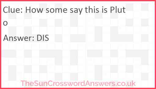 How some say this is Pluto is a crossword clue for which we have 1 possible answer and we have spotted 1 times in our database. This crossword clue was last seen on 24 April 2025 in The Sun Cryptic Crossword puzzle!